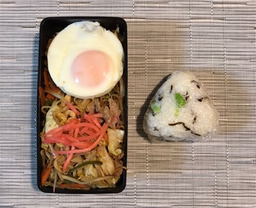 今日の弁当 0213 ・焼きそば ・目玉焼き ・枝豆と塩こんぶのおにぎり 焼きそばは、野菜炒めじゃない?と思うくらい野菜を入れた。 シャキシャキ野菜がいい感じ。 最近料理が上手くなってきたんじゃないかな。 職場の電子レンジを使おうとしたら、 電子レンジ…